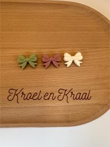 Onze strikjes zijn er in alle kleuren van de regenboog 🌈 – van zachte pastel tot knallende felle tinten. Daarnaast zijn er zelfs mogelijkheden voor metallic varianten en leuke printjes, zodat je jouw speenkoord, sleutelhanger of badgehouder echt helemaal naar wens kunt laten samenstellen
