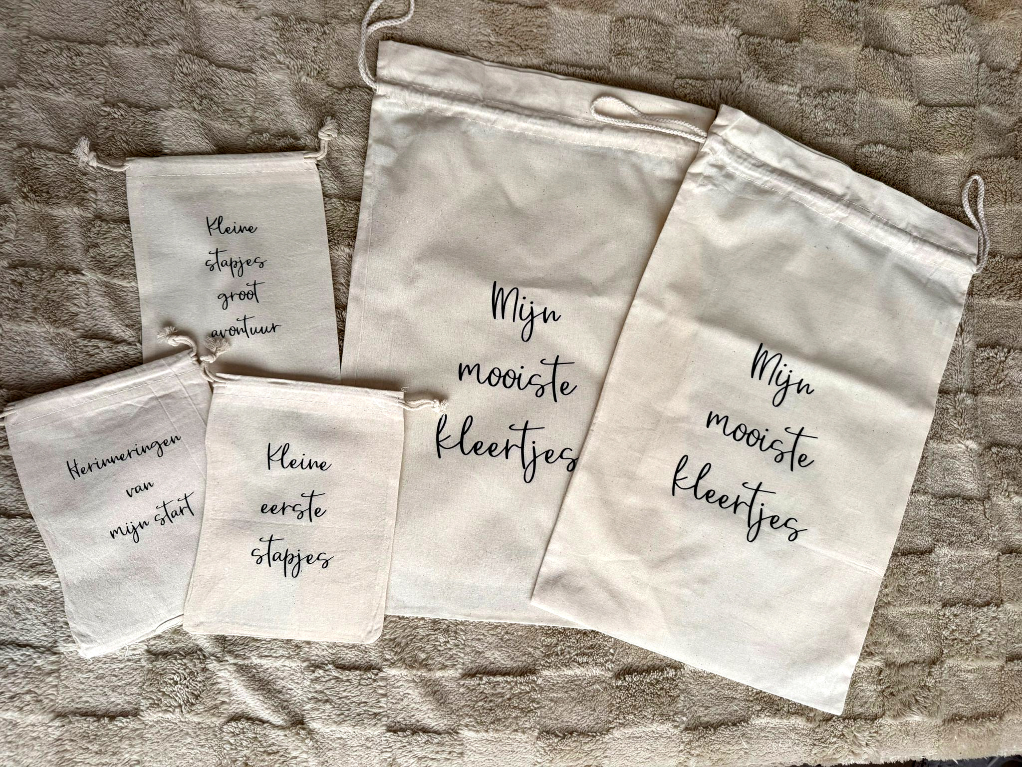 Voor de herinneringszakjes kun je kiezen uit verschillende lieve teksten. Zo kun je precies bepalen welke herinneringen je wilt bewaren.