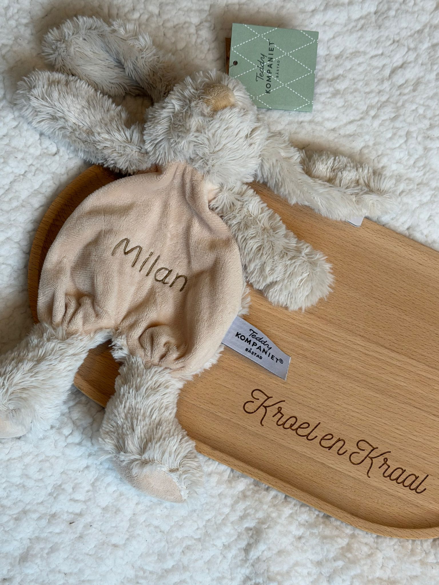 Het rustige design en het zachte materiaal maken deze knuffel geschikt vanaf de geboorte. Door de naam van je kindje te borduren, wordt Knuffel Lolli een uniek en persoonlijk item. Perfect als kraamcadeau of als eerste knuffel.