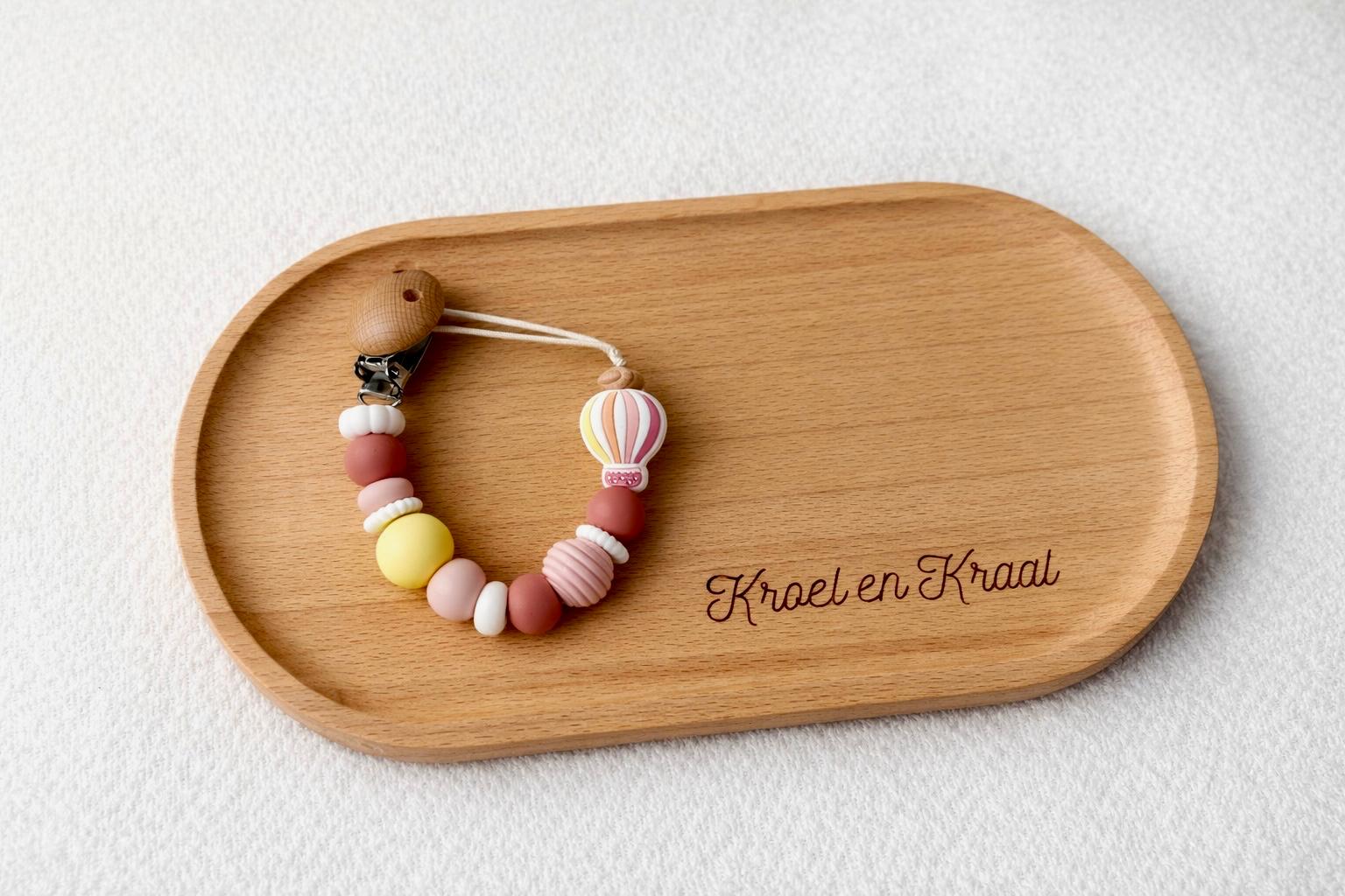 Dit speenkoord met luchtballon heeft een zachte, dromerige uitstraling en is een echte eyecatcher. De combinatie van rustige kleuren en het speelse luchtballon detail geeft het speenkoord een lieve en unieke look die perfect past bij jouw kleintje.