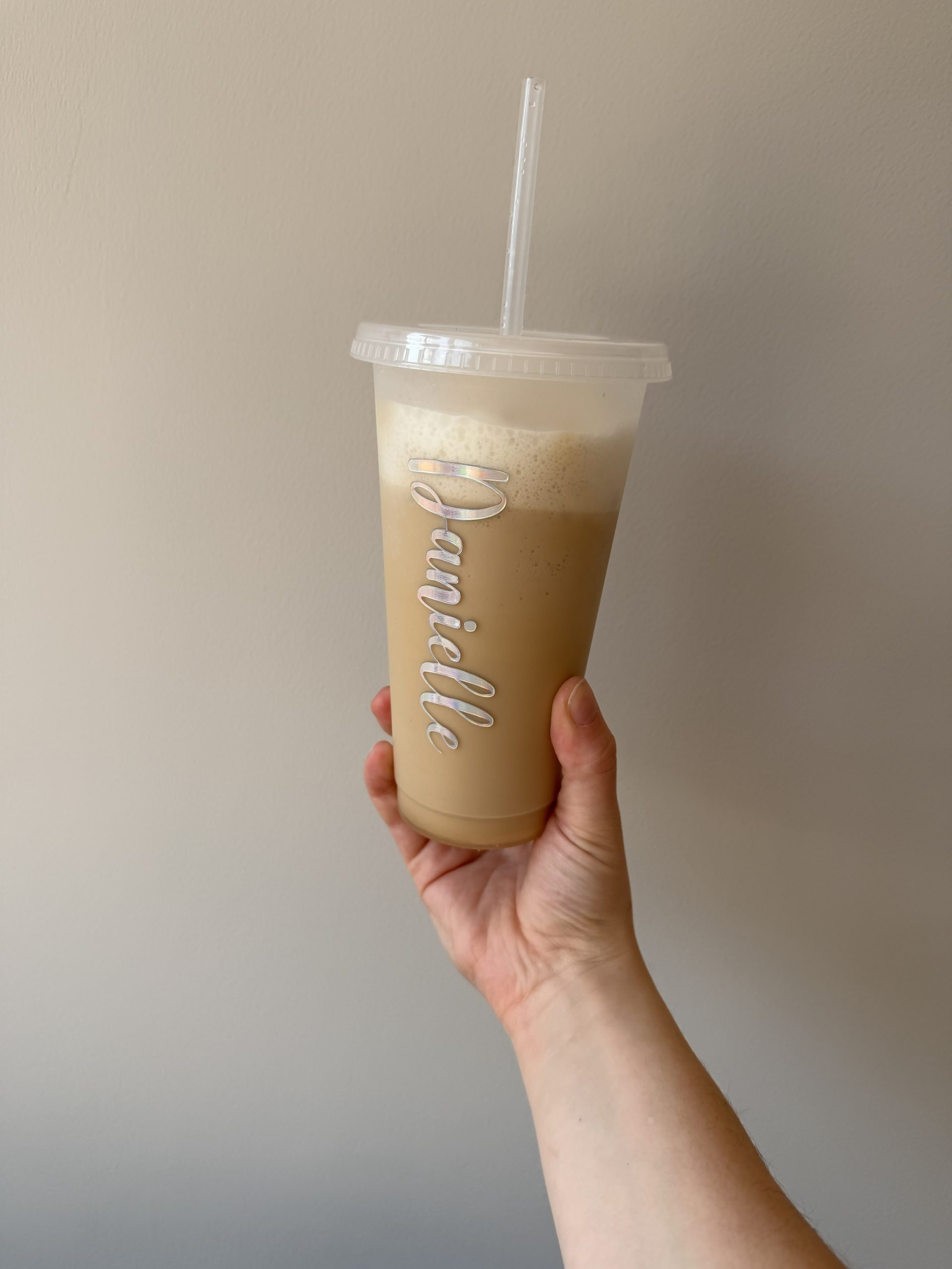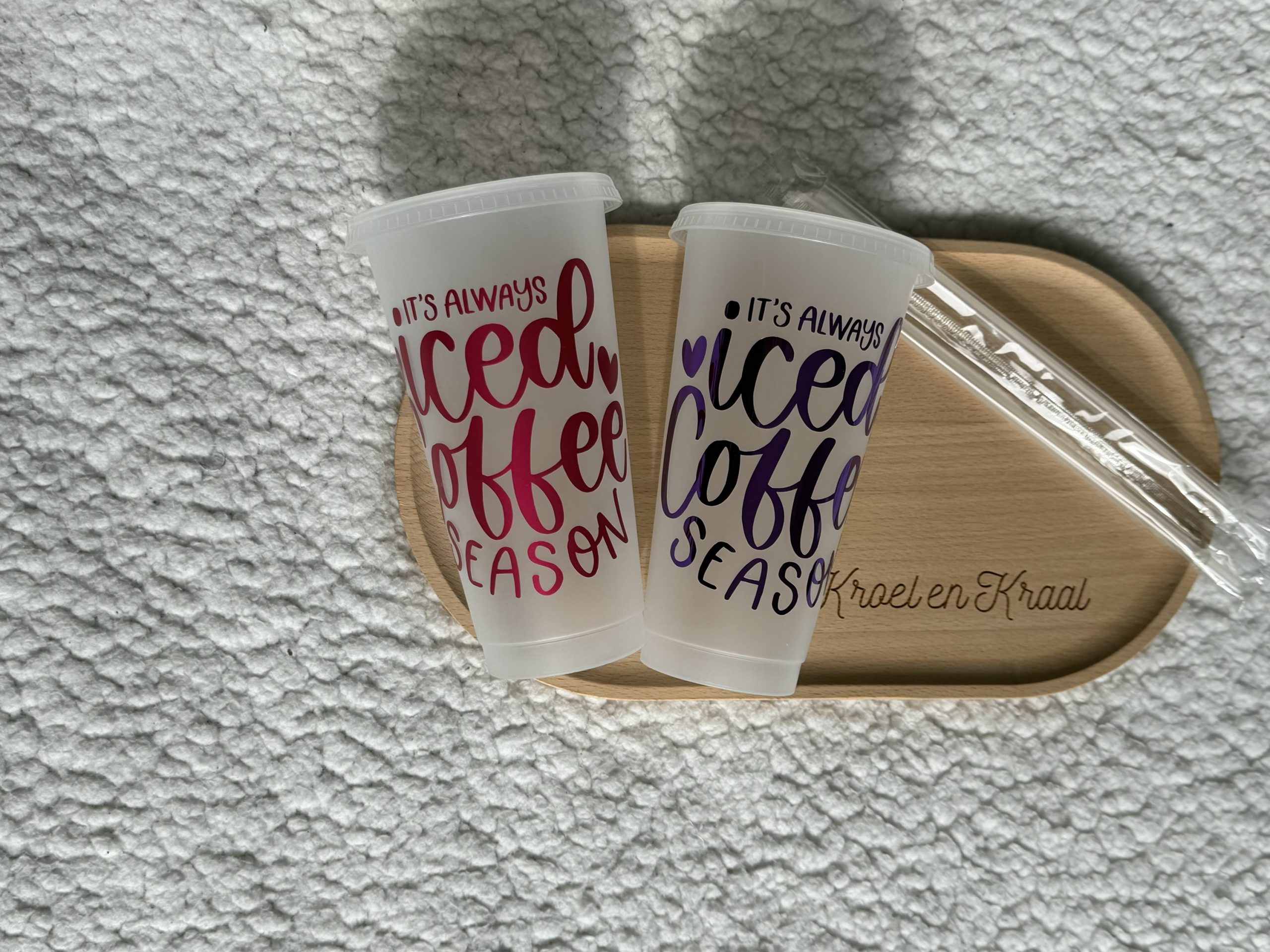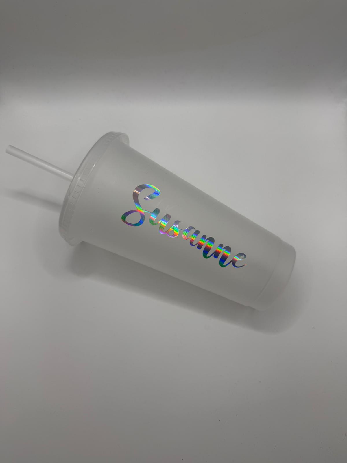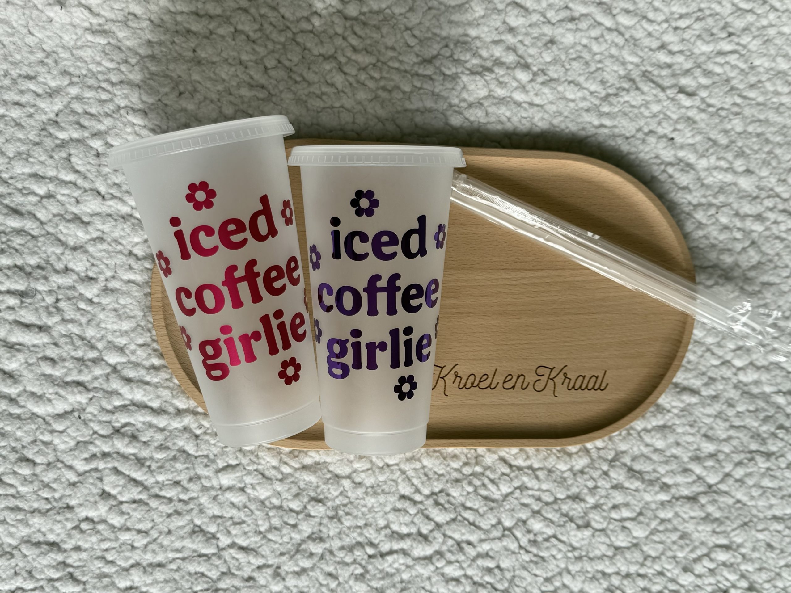 Gepersonaliseerde ijskoffie beker met tekst of naam