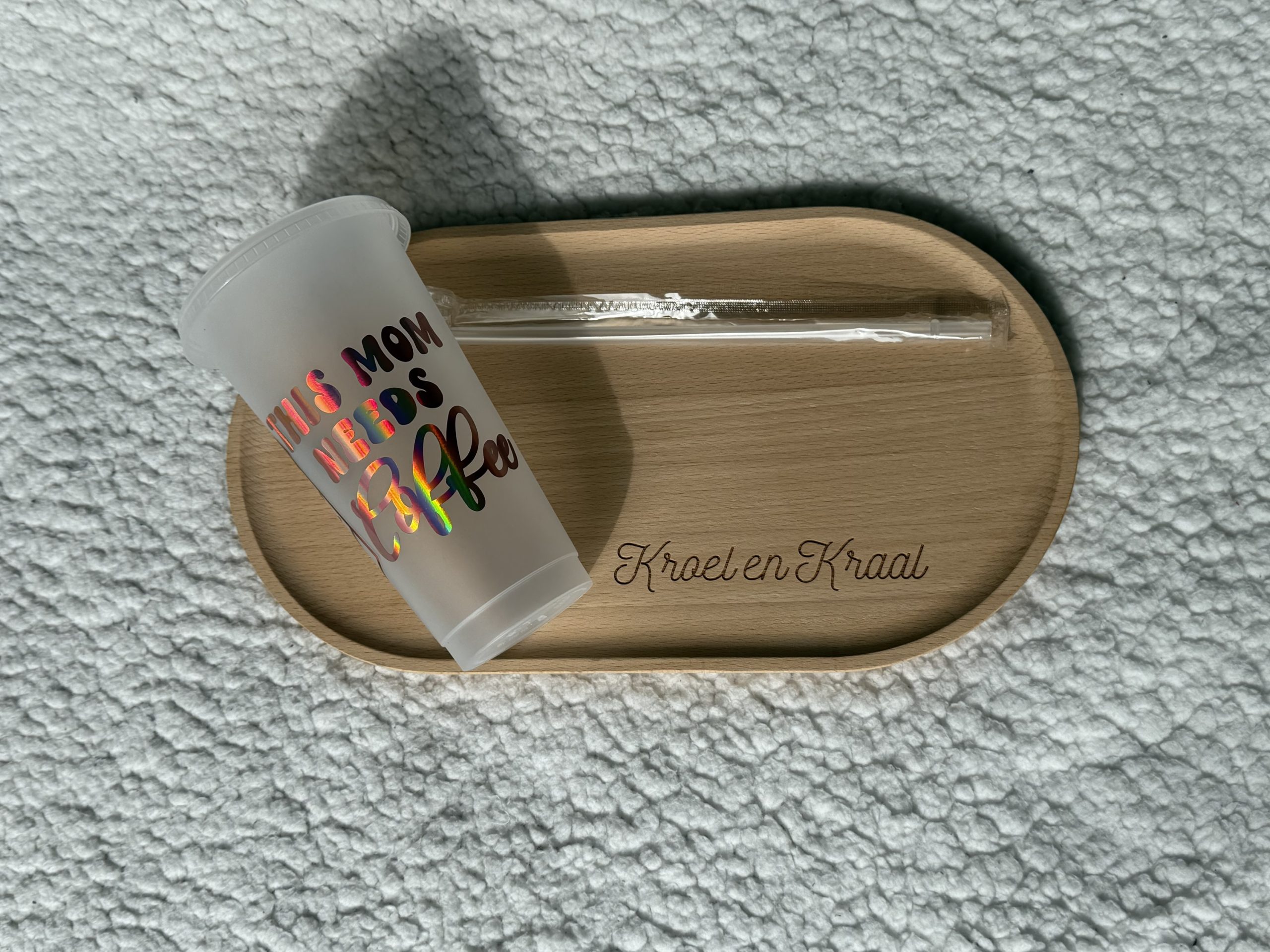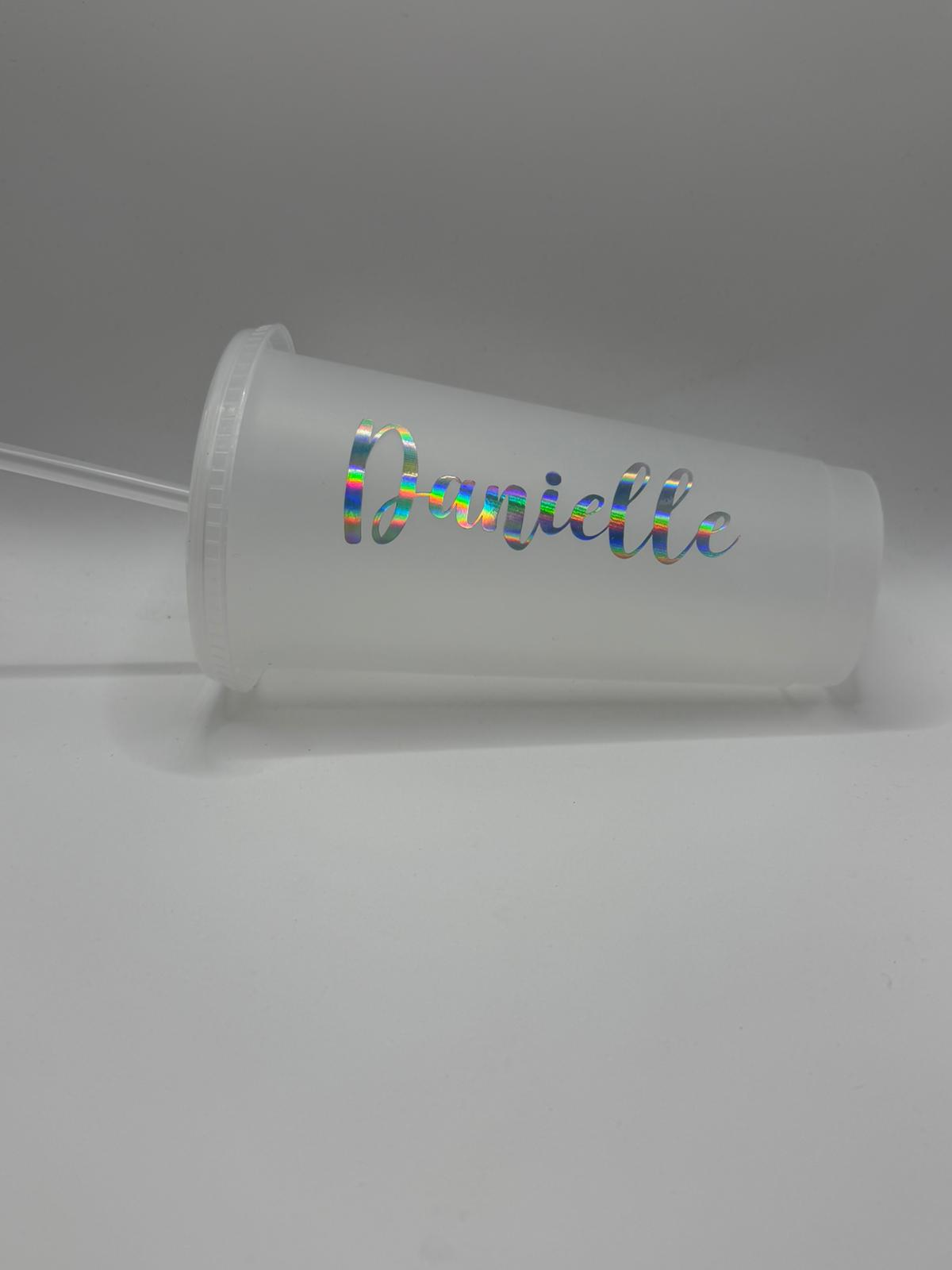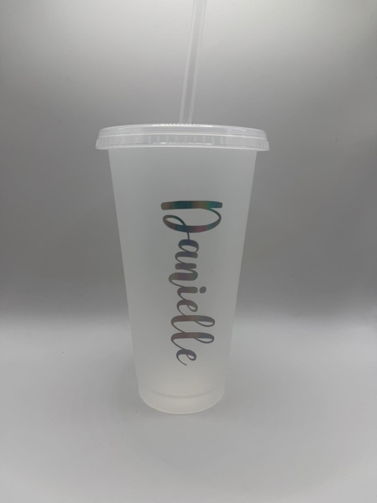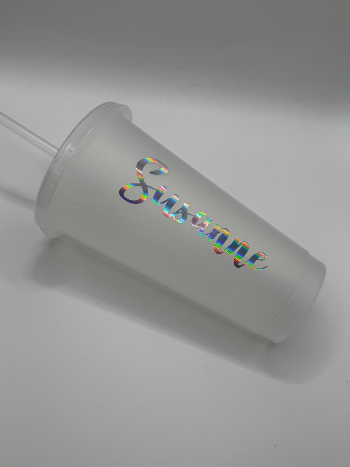 Gepersonaliseerde ijskoffie beker met tekst of naam
