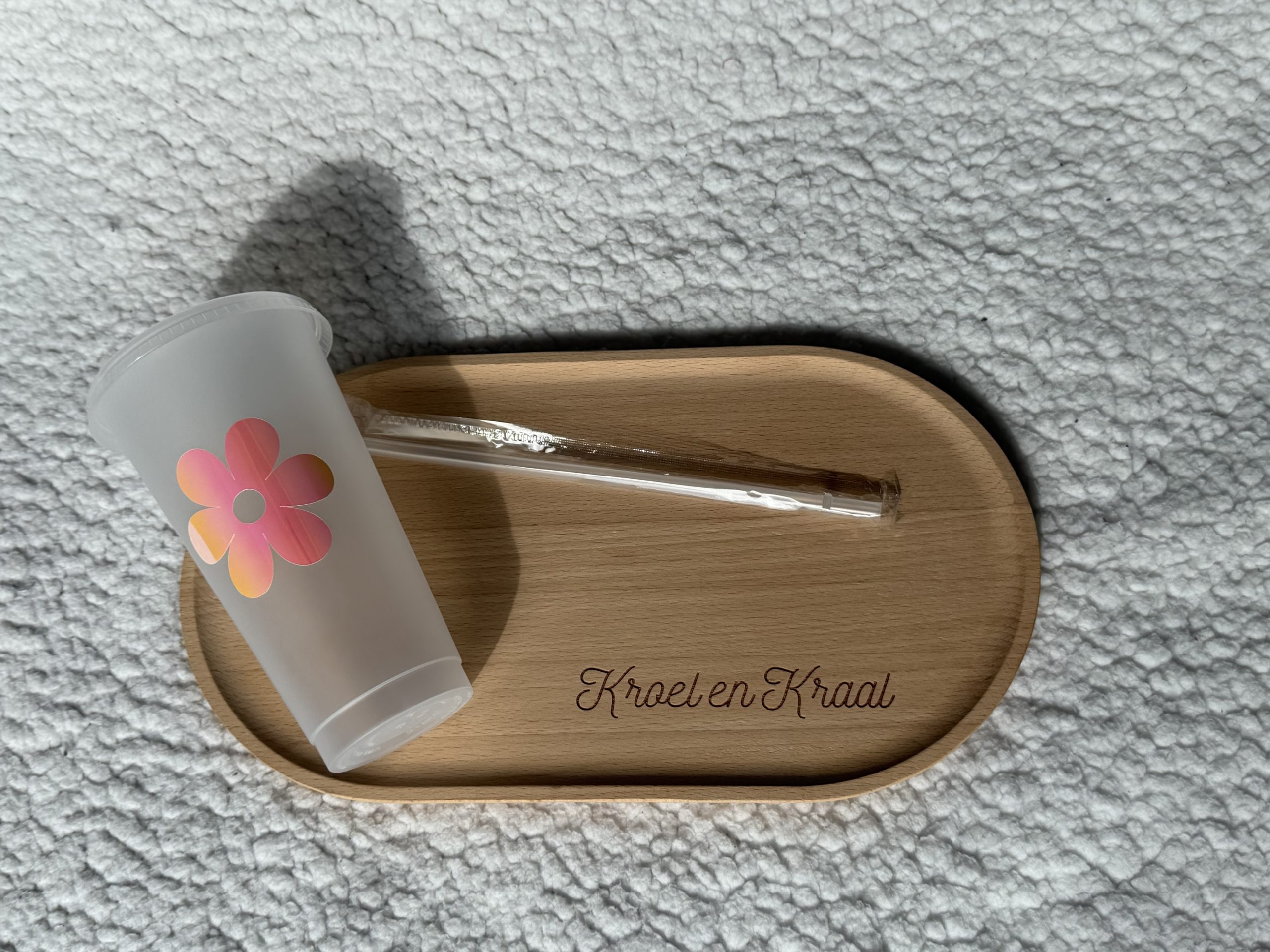 Laat in de bestelnotitie weten welke tekst of naam en kleur je op de beker wilt.