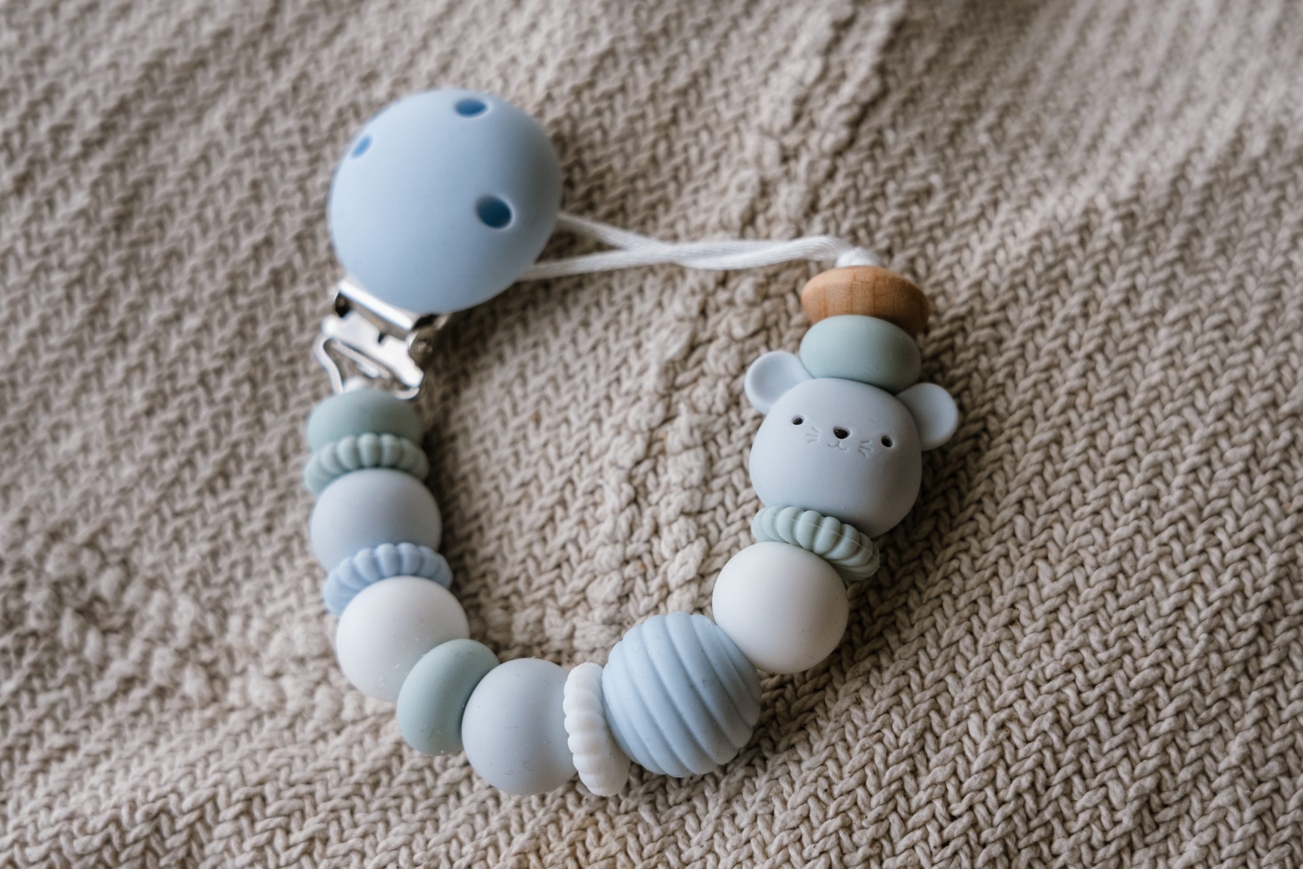 Onze speenkoorden voldoen volledig aan de Europese veiligheidseisen. Andere producten, zoals sleutelhangers of tassenhangers, zijn uitsluitend bedoeld als accessoire en niet als speelgoed.
